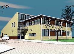 | Buurtcentrum in Capelle a/d IJssel Anno 2002 - Het gebouw is gelegen aan een bestaande woonstraat, grenzend aan een klein park met speeltuin. De bouwvolumen leggen de verbinding tussen deze twee gegevens. Veel daglicht is een vereiste en een multifunctioneel gebruik door buurtactiviteiten en buitenschoolse opvang. Het aan de straat gelegen deel is in twee lagen, het totaal volume is ongeveer 750 m3. Alle ruimten zijn gegroepeerd rond een open hal die tevens dient als ontmoetingsplaats. Door gebruik van vouwwand, kleine lift en bar kunnen gelijktijdig zeer verschillende gebruikersgroepen dit gebouw benutten. Andries van Wijngaarden AVB-BNA - E-mail: wijnarch@xs4all.nl Recente projecten: Eerdere projecten: |