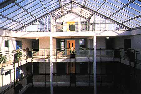 | Project Donjon te Vianen - bijzondere ouderenhuisvesting in een naoorlogse woonwijk. Een nieuwe woontoren met atrium en ventilerende glaskap werd toegevoegd aan bestaande flats in combinatie met een dienstencentrum op de begane grond. De bestaande galerijblokken werden beglaasd en aangepast. Bestaande bergingen werden vervangen door woningen. Andries van Wijngaarden AVB-BNA - E-mail: wijnarch@xs4all.nl home . donjon . singel . woonwerkgebouw . geluidschermwonen . octaafconcept . kantooraanhuis |