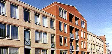 | Stadswoningbouw Singel Schiedam - Een woningcomplex op diverse lokaties in de sociale- en in de koopsector. De koopwoningen zoals afgebeeld bestaan uit zogenaamde stadswoningen met praktijkruimte, afgewisseld met appartements torentjes. Het geheel vormt een lange, gebogen straatwand in drie kleuren baksteen. Andries van Wijngaarden AVB-BNA - E-mail: wijnarch@xs4all.nl home . donjon . singel . woonwerkgebouw . geluidschermwonen . octaafconcept . kantooraanhuis |