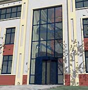| Bedrijfsgebouw TASTA [bouwsysteem] - In een bedrijvenpark is op een hoeksituatie een markant gebouw gewenst, flexibel van opzet en vrij indeelbaar. Het 'Tasta' cellenbeton droogstapel bouwsysteem beschikt al over een jarenlange traditie in woning- en utiliteitsbouw. In dit ontwerp is onderzocht wat er meer kan met cellenbeton, met name op het gebied van relief en textuur en de wens zo'n universeel gebouw een enigszins klassieke uitstraling te geven, waarmee men zich kan identificeren. De gekozen stramienmaat van 5,50 meter bepaalt de hoofdstructuur. Van hieruit zijn de gevelonderdelen ontwikkeld in steeds kleinere details. Massief cellenbeton afgewerkt in diverse texturen en kleuren stucwerk en tegelwerk biedt ongekende mogelijkheden om de gevel vorm te geven. De raamkozijnen zijn van gemoffeld aluminium. De hoofdingang wordt gemarkeerd door een tongewelf, hetgeen evenals alle vloeren en daken ook in cellenbeton wordt uitgevoerd. Recente projecten: Eerdere projecten: |