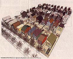 "lk pleit voor afschaffing van de staatsarchitectuur. Als de overheid consequent is in de bevordering van de marktwerking, dan moet de ruimtelijke ordening en woningbouw ook worden geliberaliseerd. En zelfs het architectonische beeld: laat de mensen zelf bepalen hoe hun woningen worden. Ik werk nu met projectontwikkelaar Era aan een plan om deze geliberaliseerde woningbouw vorm te geven." Carel Weeber wil af van het rijtjeshuis