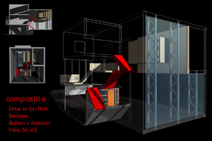 | Binnen het voorgestelde WiWo concept hebben de bewoners de vrijheid gekregen om hun eigen woning te componeren uit bouwelementen. Bouwmarkten, catalogi, het internet, allemaal bieden ze ruime keuzes uit Jugendstil deuren, gotische kozijnen en moderne daken. Naar eigen smaak en budget kan de woning worden samengesteld. Echter het alleen kunnen kiezen uit bouwelementen voldoet niet aan het idee van het realiseren van je eigen woonwensen. Woonwensen worden niet bepaald door een optelsom van verschillende bouwelementen. Deze doen namelijk nog geen uitspraak over ruimtelijke kwaliteit. Maar hoe verkoop je dan deze ruimtelijkheid? Wat is de prijs van 36m3 vide? Aan het ontwerp van de woning ligt meer ten grondslag dan een compositie van bouwdelen. Honderden jaren architectuurgeschiedenis leveren waardevolle archetypische, ruimtelijke concepten op, zoals de Romeinse villa, het raumplan en het plan libre. Als een woningontwerp wordt gecomponeerd enkel vanuit de bouwelementen zullen ruimtelijke ideeen als deze geintegreerd moeten worden in de elementen.