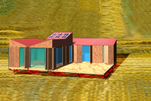 | Er worden plaatsen aangewezen waar het eenieder vrijstaat zelf een huis te bouwen. De enige restrictie aan het huis is dat het verplaatsbaar moet zijn. Met mobiel wonen ontstaat mobiele stedenbouw;  een woongebied kan weer natuurgebied worden, landbouwgebied weer woongebied. Bewoners kunnen zelf uitmaken waar ze gaan wonen en gedurende het jaar ook van plek veranderen. 's-Winters dicht bij je werk in het bos, 's-zomers bij zee of ergens op een plas die als waterberging dient. Voor de bouw van een nomadische woning is geen grondverbetering nodig; de mobiele woning tast bij het bouwen het landschap niet aan maar benut het. Uitgangspunt voor de systeemwoning is een basismodule met ecologische kern: een installatieschacht met energiezuinige voorzieningen in het hart van de woning. Elektriciteit wordt daar opgewekt door zonne-energie, opgevangen regenwater wordt er gezuiverd en opgeslagen. De woning kan hieromheen worden uitgebreid naar behoefte met modules die worden besteld uit een catalogus en volledig uitwisselbaar zijn, waardoor een optimale flexibiliteit ontstaat. De units kunnen makkelijk worden vervoerd, geplaatst en voorzien van elk denkbaar gevelmateriaal en -indeling. Het huisvuil wordt zoveel mogelijk in de ecologische kern verwerkt, wat overblijft op centrale verzamelplekken opgehaald. De riolering is overbodig door biologisch verwerking eveneens binnen de woning. De woningen zijn zonder kabelaansluitingen voor telefoon en televisie en niet voorzien van gas. Het mobiele huis is niet alleen vervaardigd uit duurzame materialen maar er zal ook een levendige handel in tweedehands units en gevels ontstaan; duurzaamheid door hergebruik. Maar ook in een ander opzicht is zij duurzaam; nu moet er bij elke verhuizing een nieuwe keuken, badkamer of vloerbedekking komen, neem je huis mee bij de verhuizing en men vermindert deze kapitaalvernietiging. Bovendien kan bij verandering van baan telkens dicht bij het werk gewoond worden: vermindering van mobiliteit door het summum van mobiliteit. | ||