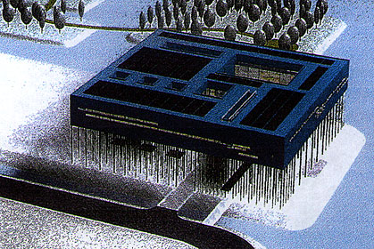 Toelichting van de jury bij het winnend ontwerp van Micha de Haas: De ontwerper heeft hier het Aluminium Bos als conceptueel uitgangspunt gekozen. De lokatie wordt door de jury zeer gewaardeerd. Het gebouw bevindt zich op een eiland in de overgangszone tussen een aan te leggen wijkpark en het bedrijventerrein. De zichtbaarheid vanaf het aan te leggen viaduct in de nieuwe provinciale weg is uitstekend. Het functionele deel van het gebouw staat op 800 aluminium kolommen in diverse dichtheden. Via een trap die zich door het aluminium bos slingert, komt men in het centrum zelf. Alle functies zijn op één verdieping aangebracht. Deze aluminium doos heeft een aantal patio's van verschillende afmeting die de functionele indeling ondersteunen en tevens voor daglicht zorgen. De lichtinval in het bos wordt hierdoor op een prachtige manier gerealiseerd. De constructie is in aluminium goed te realiseren.