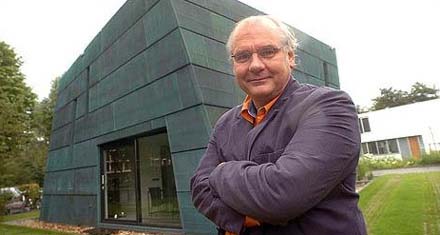 Afgelopen vrijdag won architect Rik Lagerwaard [zie foto boven] de Architectuurprijs Amersfoort voor zijn eigen woonhuis aan de Bachweg in diezelfde gemeente. De prijs werd voorafgegaan door een internetverkiezing, waarbij dit keer - met meer dan 700 stemmen - eens een modern ontwerp tot winnaar werd gekozen [meestal kiest het publiek conservatief of nostalgisch, getuige de hoge score van architectenbureau Alberts en Van Huut bij de recente Trouw-verkiezing van het Mooiste gebouw van Nederland].