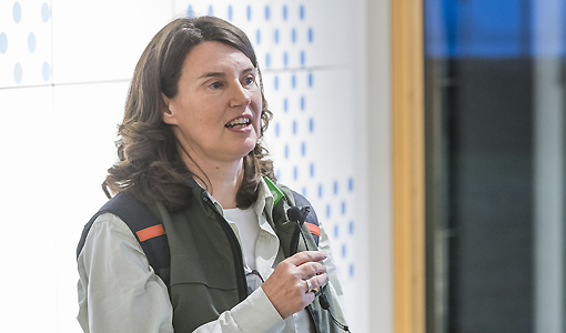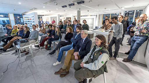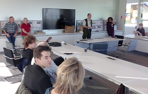 ^ Boswachter Judith Hendriks en teamleider Annemiek Kooij van Staatsbosbeheer Aansluitend verplaatsten we ons naar de ruimte van Mosa, waar organisator Kees van der Hoeven de bijeenkomst opende. Vervolgens vertelde Annemiek Kooij over de achtergonden en de taken van haar team binnen Staatsbosbeheer bij het beheer van natuurgebied de Hollandse Duinen, waarin de locaties van de ontwerpopgave gelegen zijn.