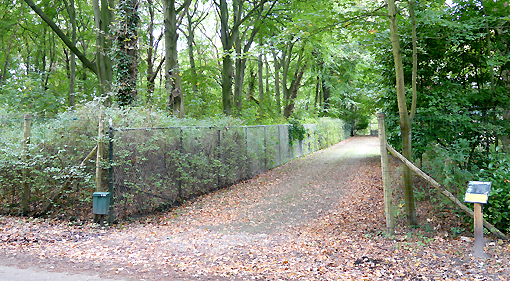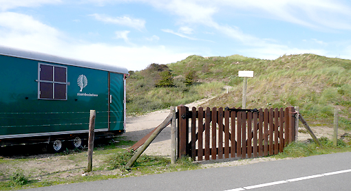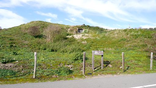 ^ Het duinterrein met de Vleermuisbunker wordt tenslotte bereikt via dit hek