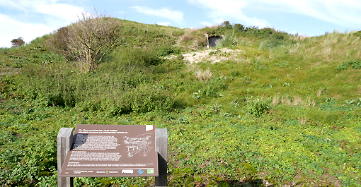 ^^ ^ Vanaf het verzamelpunt loop je langs dit infobord (en zie je al een entree van de bunker)