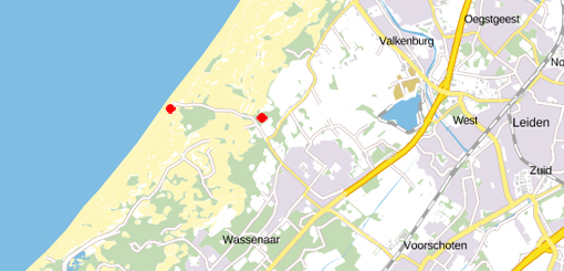 ^ Het duingebied bij Wassenaar, met de twee bedoelde locaties